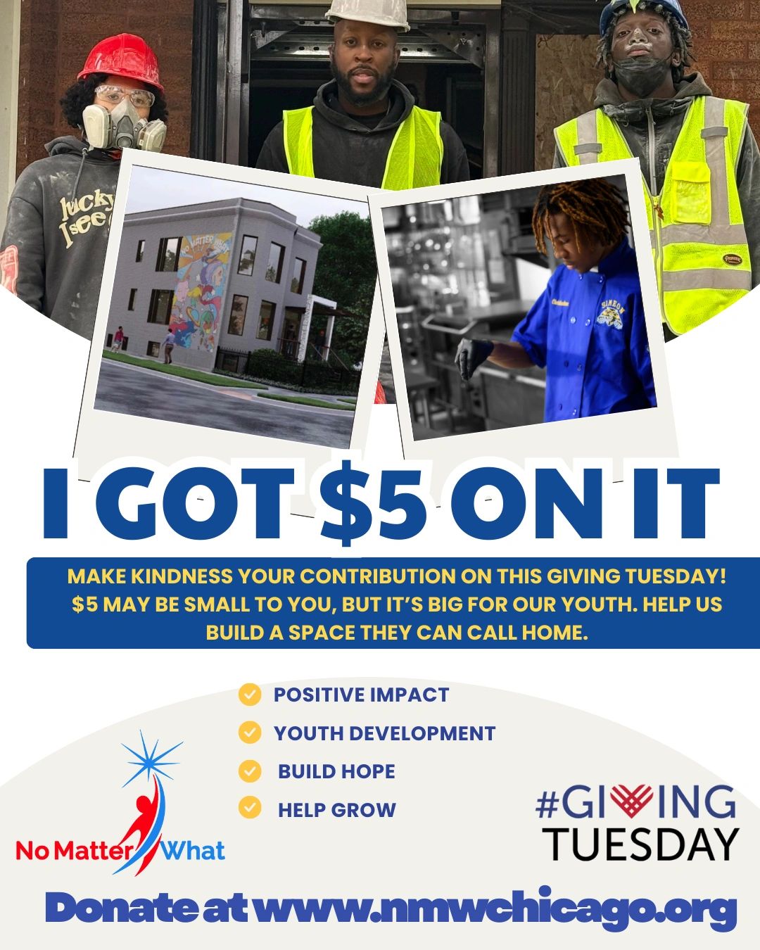 Five dollars may not seem like much, but for No Matter What, it helps us create safe spaces, build our new community center, provide mentorship, support mental health, and open doors for Chicago youth who deserve every opportunity to win.